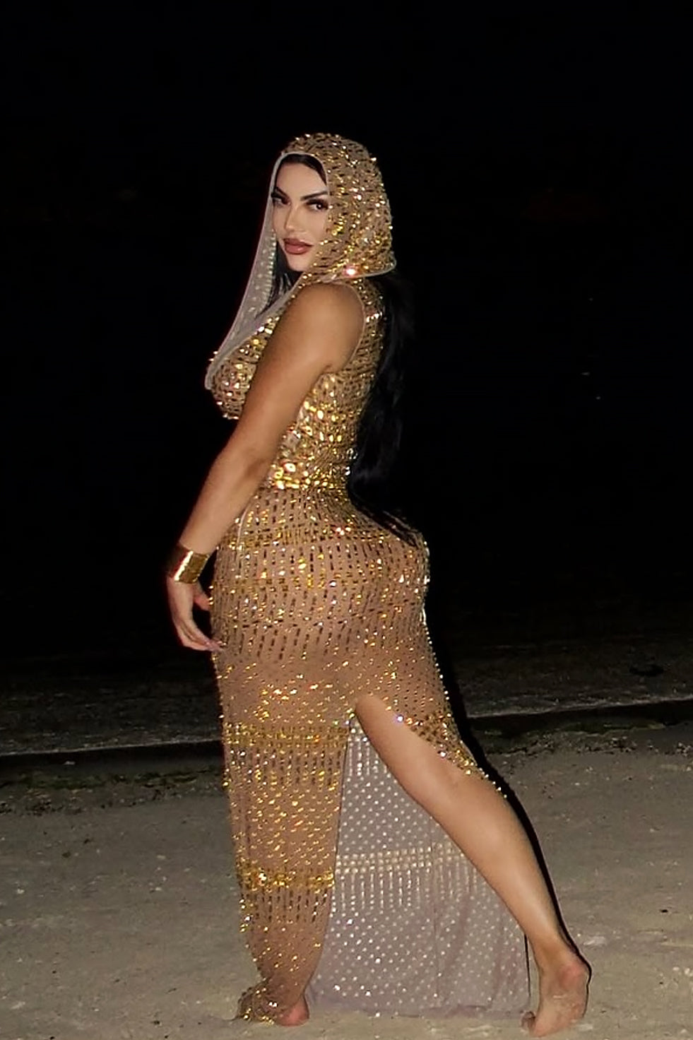 • Vertical and horizontal rhinestone patterning for a sculpted effect