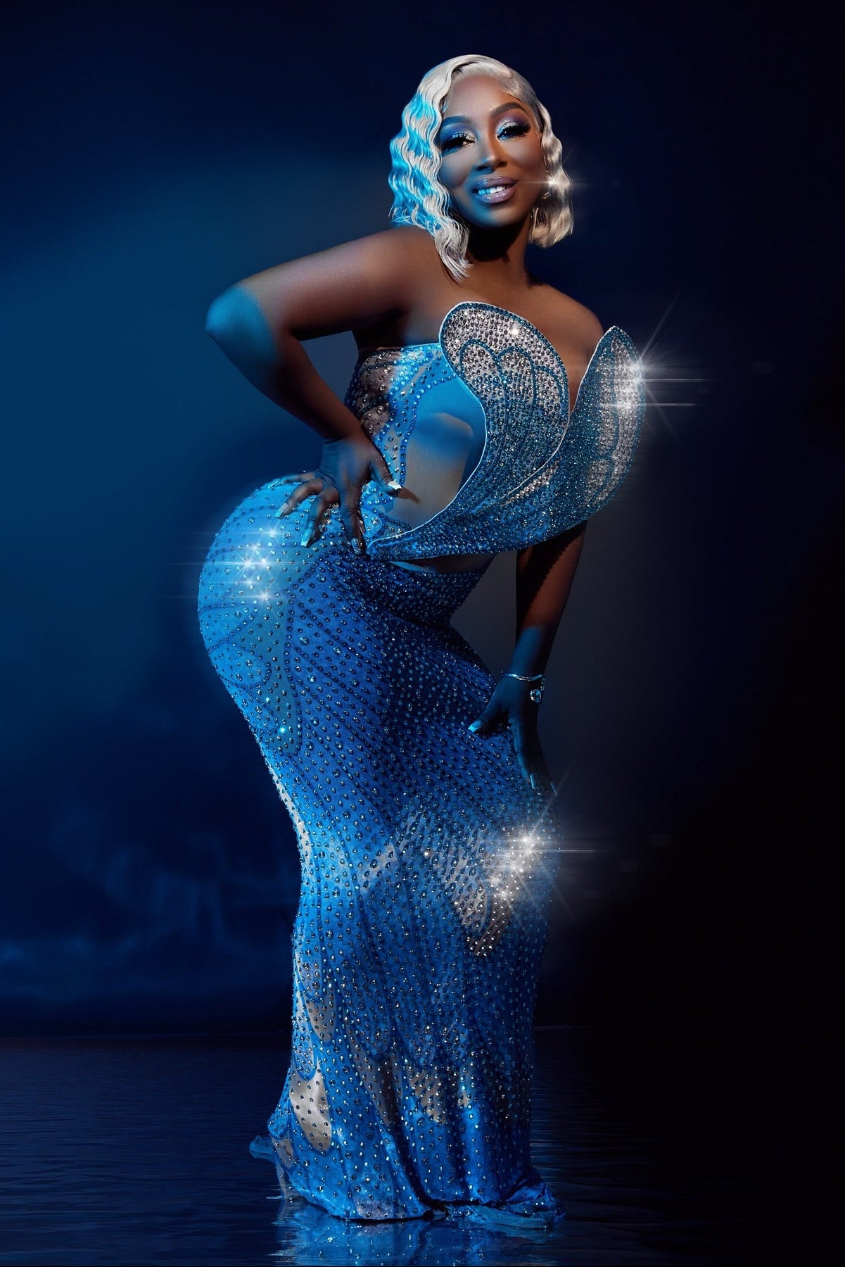 A true statement of elegance and artistry, the Petal Kiss Blue Gown is designed to captivate from every angle.