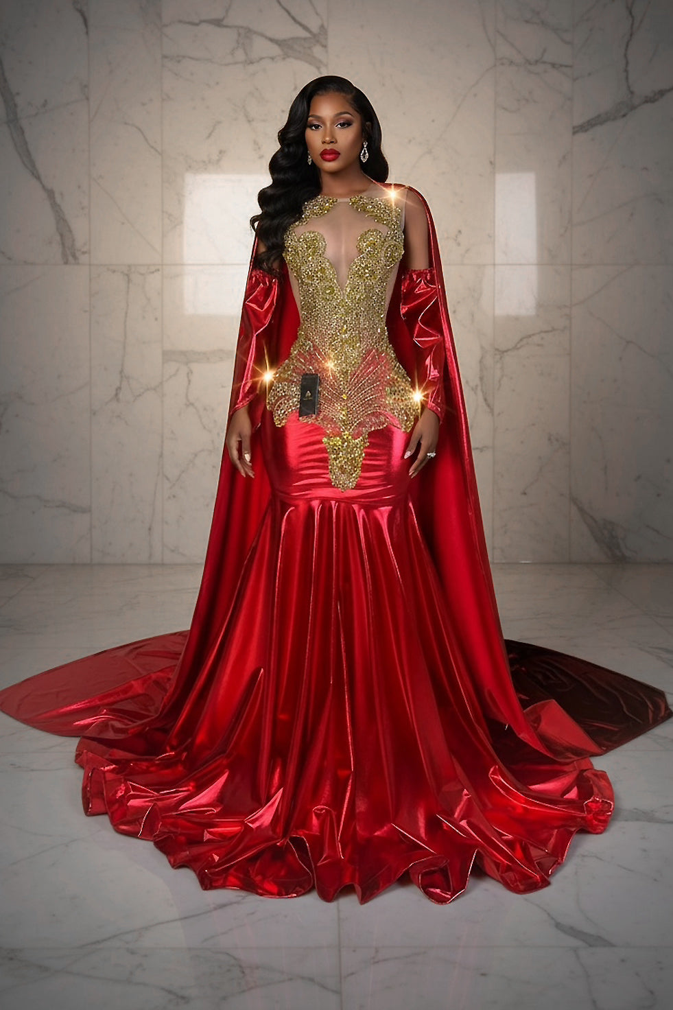 Perfect for prom, gala, birthday photoshoot, pageant, holiday party, or any special occasion where you want a show stopping red chrome gown