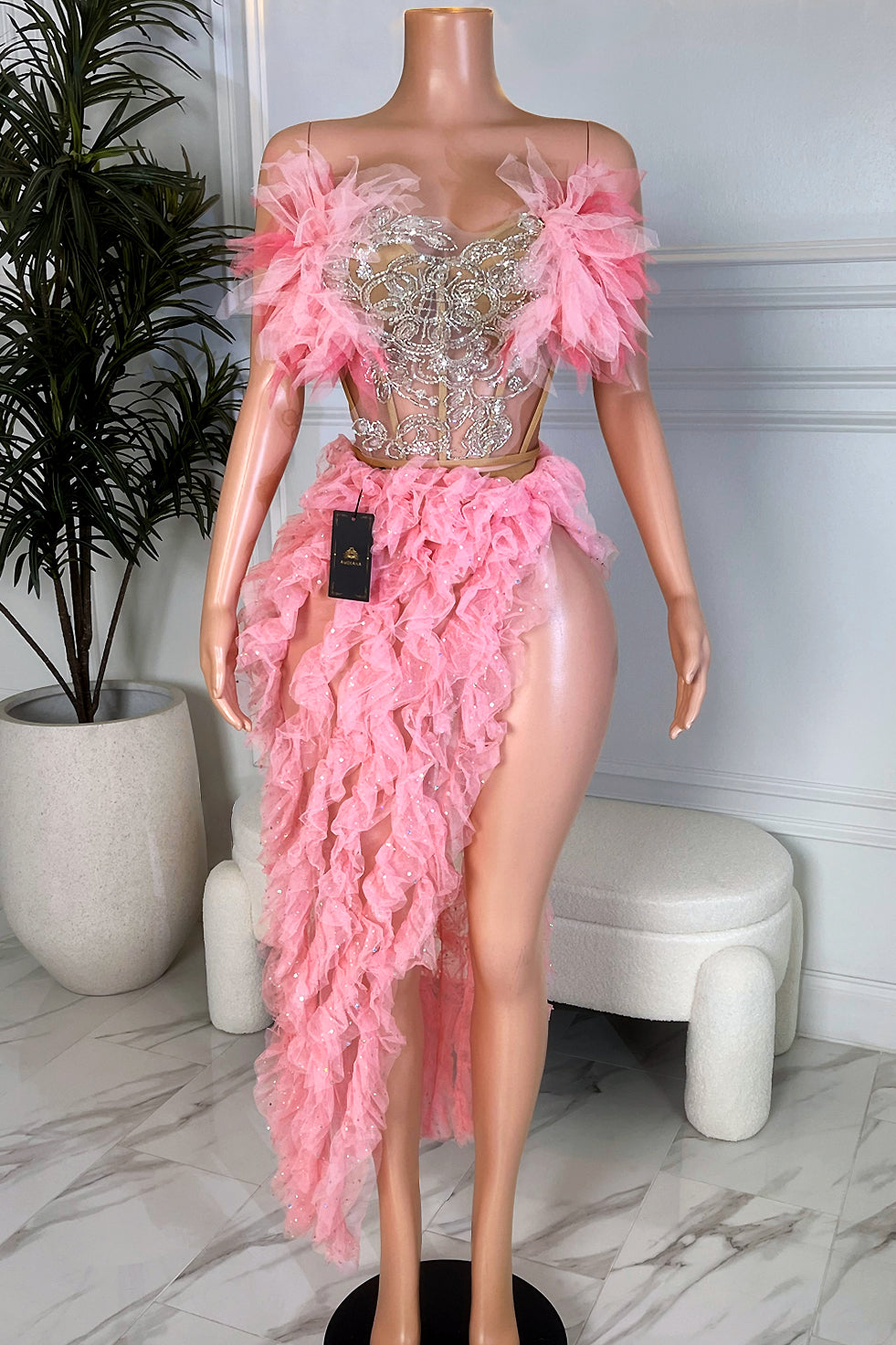 This dress is perfect for events where making a dramatic entrance is essential. It is ideal for formal occasions such as prom, a high-fashion gala, or an extravagant birthday celebration. Its unique blend of elegance and playfulness also makes it suitable for themed parties or photoshoots where a touch of fantasy and flair is desired.
