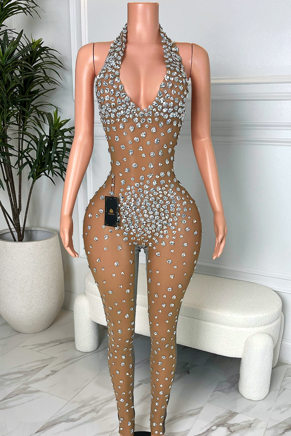 This Cally Silver Diamante Bodysuit is crafted from breathable mesh and adorned with shimmering rhinestones. Perfect for special occasions such as prom, date night, birthdays, and clubbing.