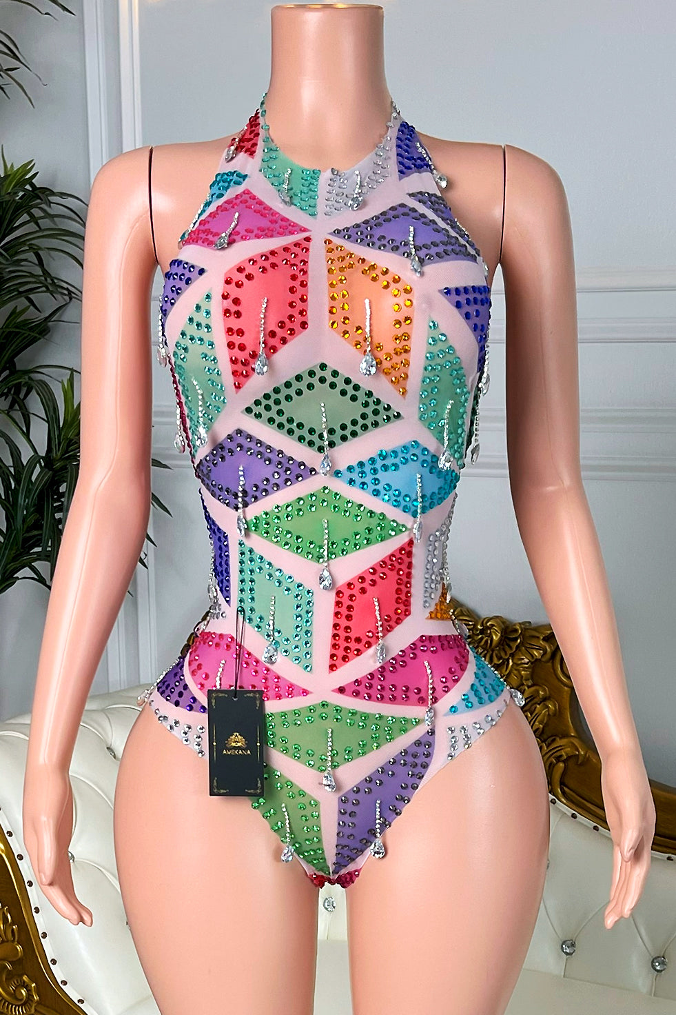 Embellishments: Fully adorned with multicolor rhinestones and silver teardrop crystal tassels for sparkle and movement