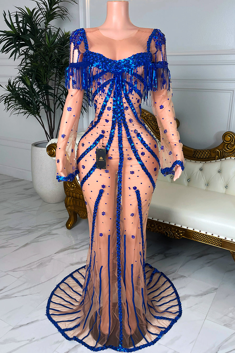 Look your best in this Moore Sequin Dress, crafted from luxurious and comfortable mesh material, featuring stunning sequin embellishments and extra-special rhinestones and tassels. Perfect for a special occasion from prom to clubbing, this dress is sure to make an unforgettable statement.