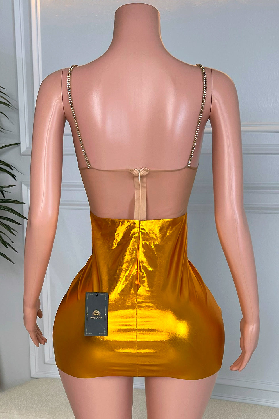 Color & Fabric: Metallic gold with high-shine, stretchy fabric
