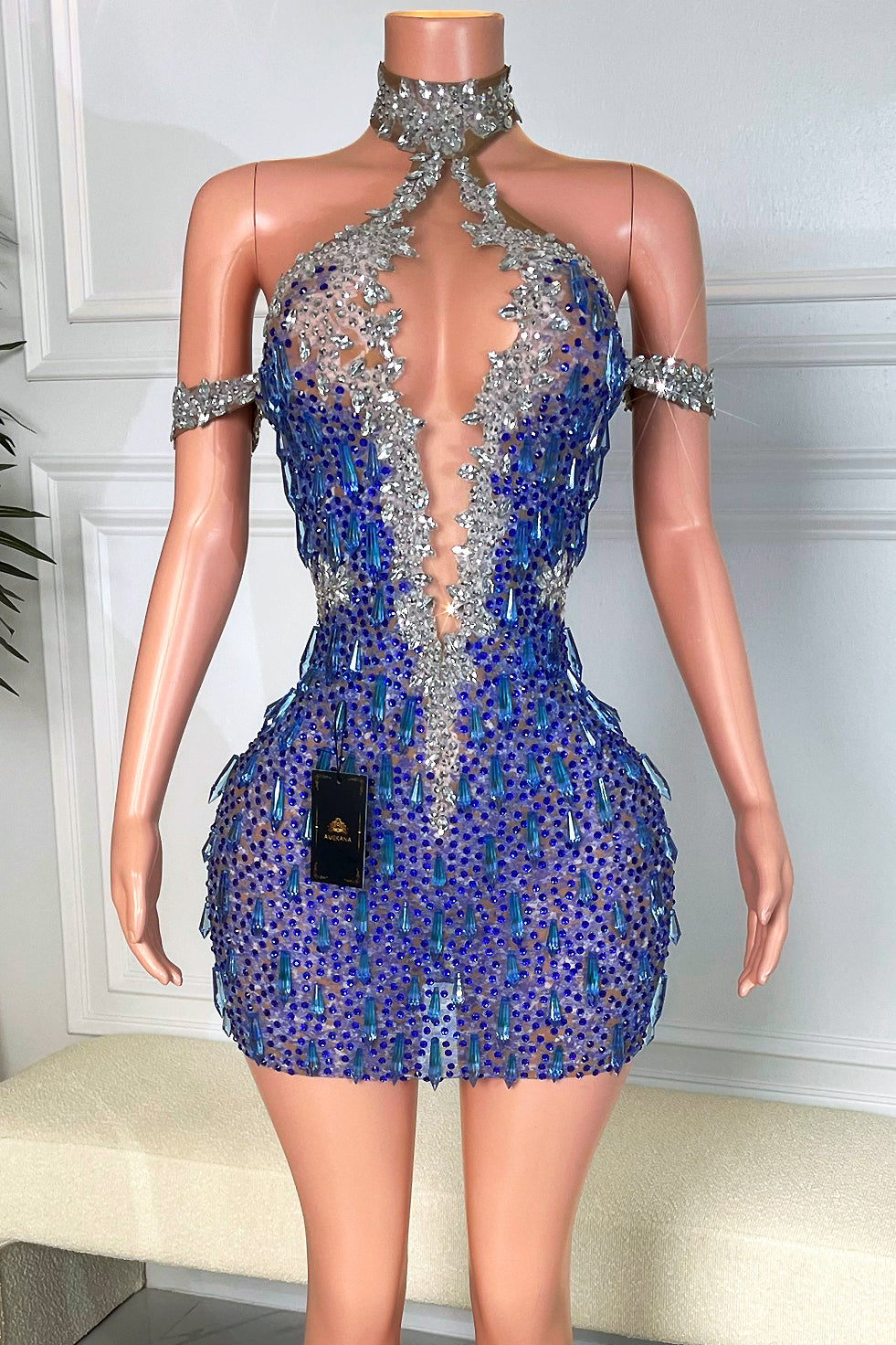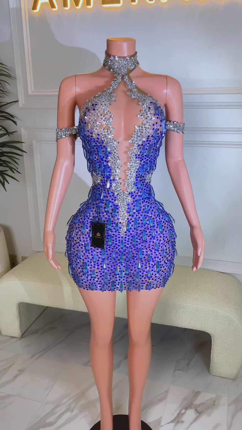 Material: Stretchy sheer mesh fabric, fully hand-embellished.