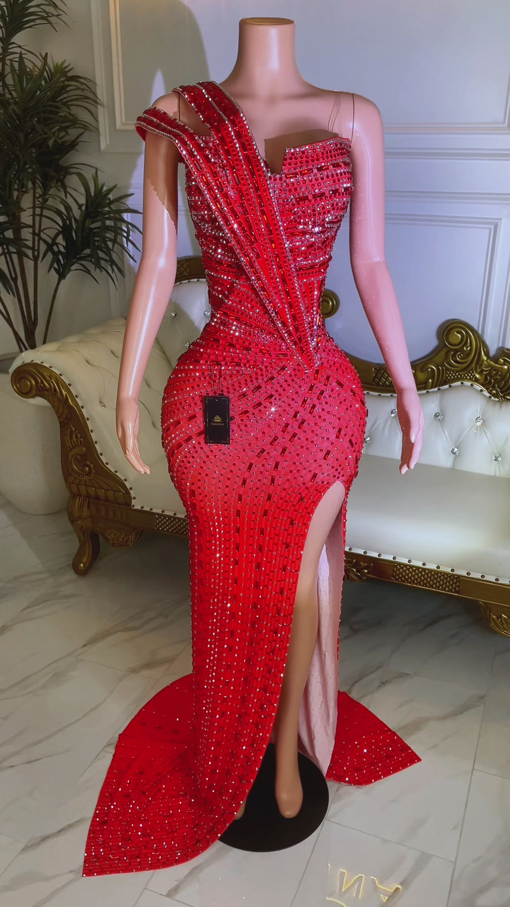 Bodice: Sculpted corset-like fit with strategic crystal placement